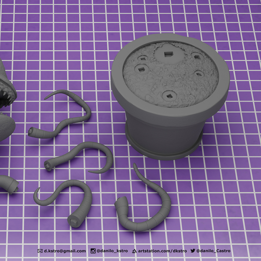 The character concept is based on the game Plants vs Zombies with some personal modifications. The project was developed with the model in mind for 3D printing, whether using a filament or resin printer.